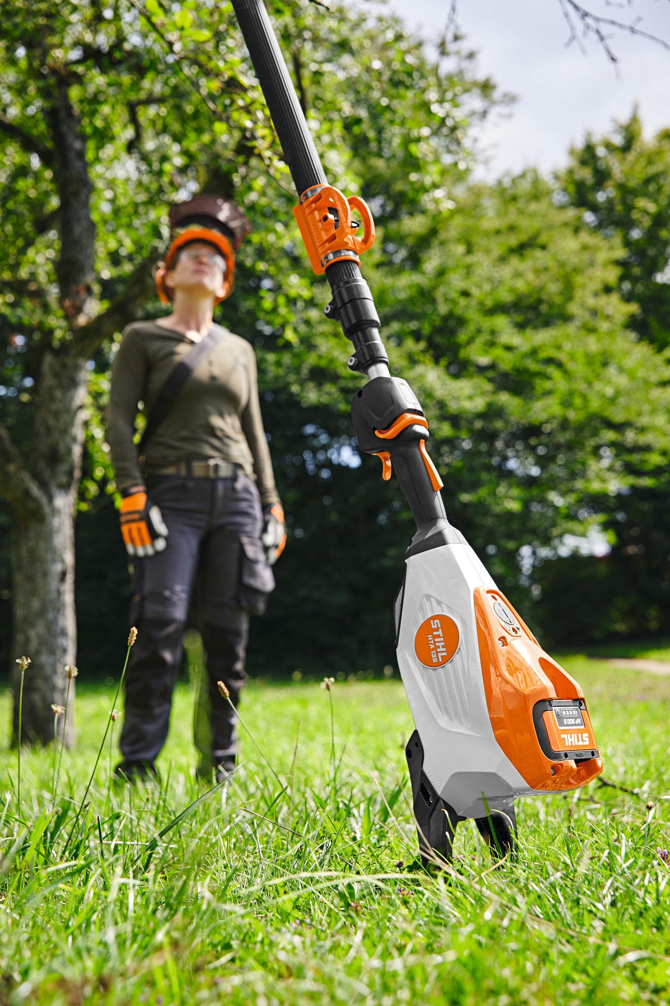 MAGASABB SÖVÉNYEK ÉS FÁK GONDOZÁSÁHOZ. A teleszkópos szár segítségével a magasabban lévő ágak nyesése is kényelmesen elvégezhető a talajról. A teleszkópos szár szerszám nélkül állítható.